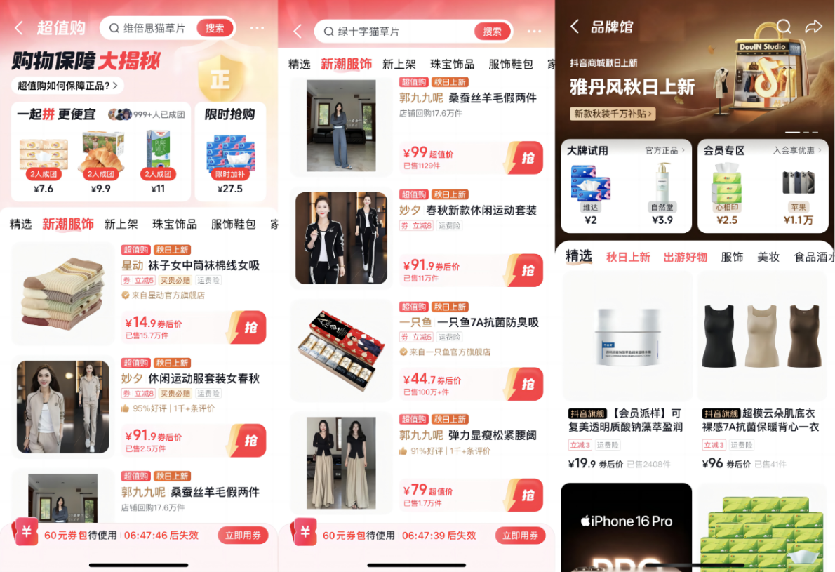 此次秋季上新潮中,我们发现,越来越多的服饰商家重点布局抖音电商的货架场景,走出更多元的转化路径。