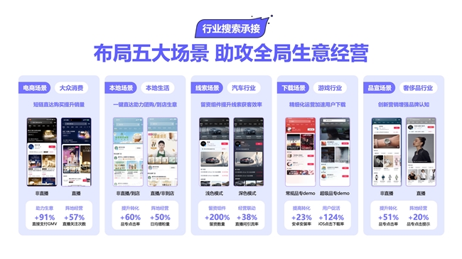 不同行业的生意逻辑、不同营销节点的用户需求存在显著差异,单一搜索策略难以实现效果最大化。搜索品专通过针对行业特性与节点需求的定制化适配,让品牌在不同经营场景下都能精准命中用户需求,解锁多元增长可能。