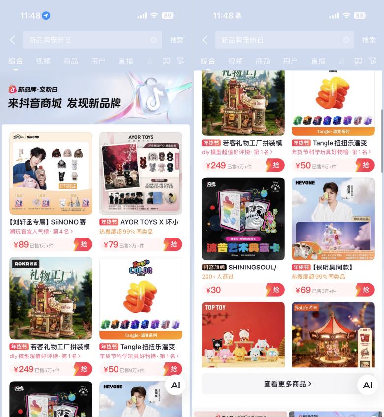 在抖音电商,一批精准踩中趋势的潮玩新品牌,在「抖音商城新品牌·宠粉日」IP加持下,率先在细分品类中收获了声量与销量的双重爆发。截至目前,活动总曝光已超过1.5亿,相关话题词最高登抖音热点榜、种草榜双榜第一。