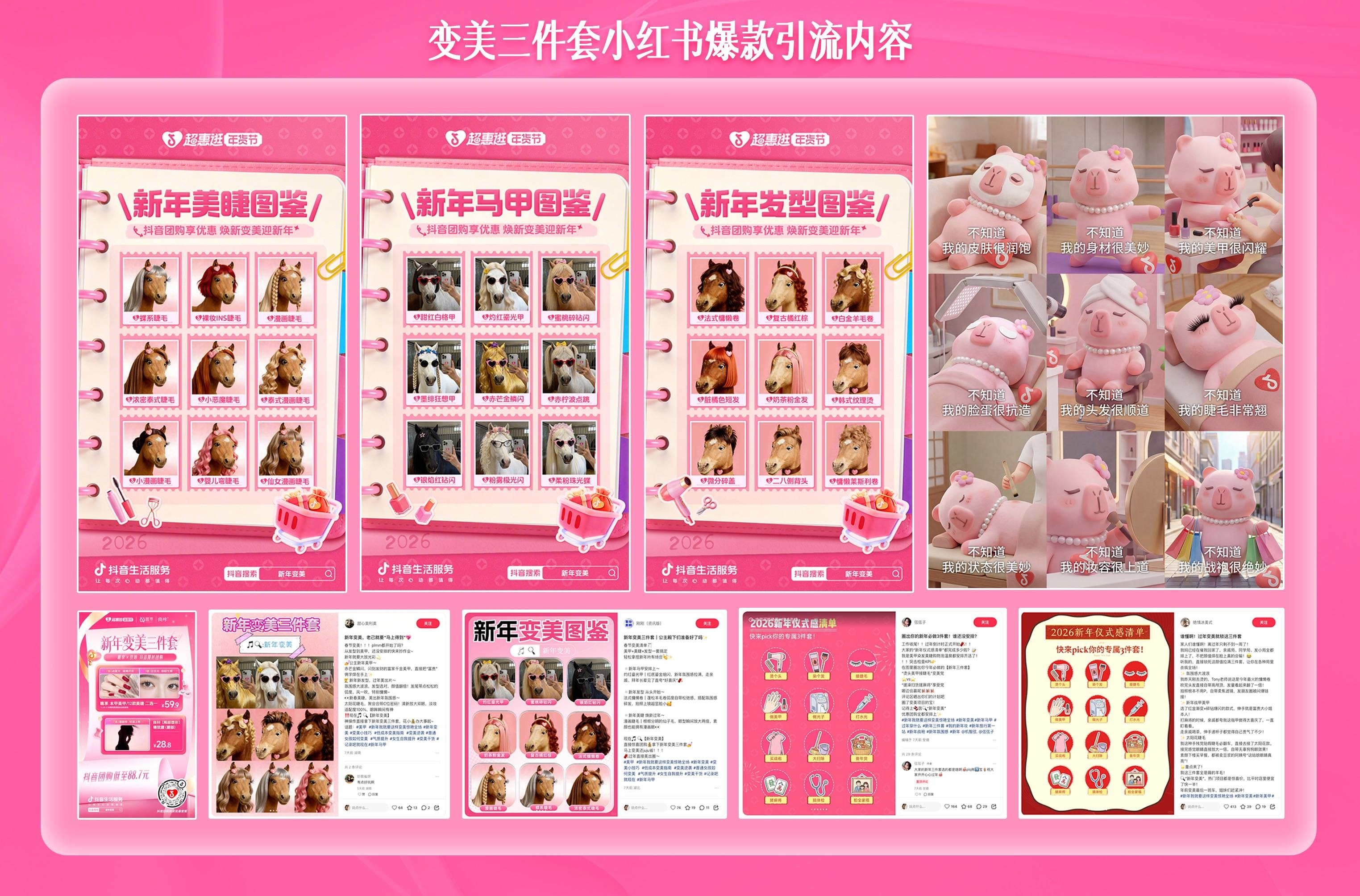 2026年初,抖音生活服务与时尚权威《瑞丽服饰美容》,于瑞丽创刊30周年之际,看见真实用户的“新年变美”需求,联手发布“四大新年趋势”,在抖音生活服务“超惠逛年货节”活动中另辟一方“变美”天地,让用户买完年货逛“美货”。不仅如此,抖音生活服务还携手明星关晓彤、任敏,平台达人迪迪不畏等,以及海量高颜值达人,组成“抖音颜值天团”,为“新年变美”加码,让“趋势之风”渗透每个人的生活。
